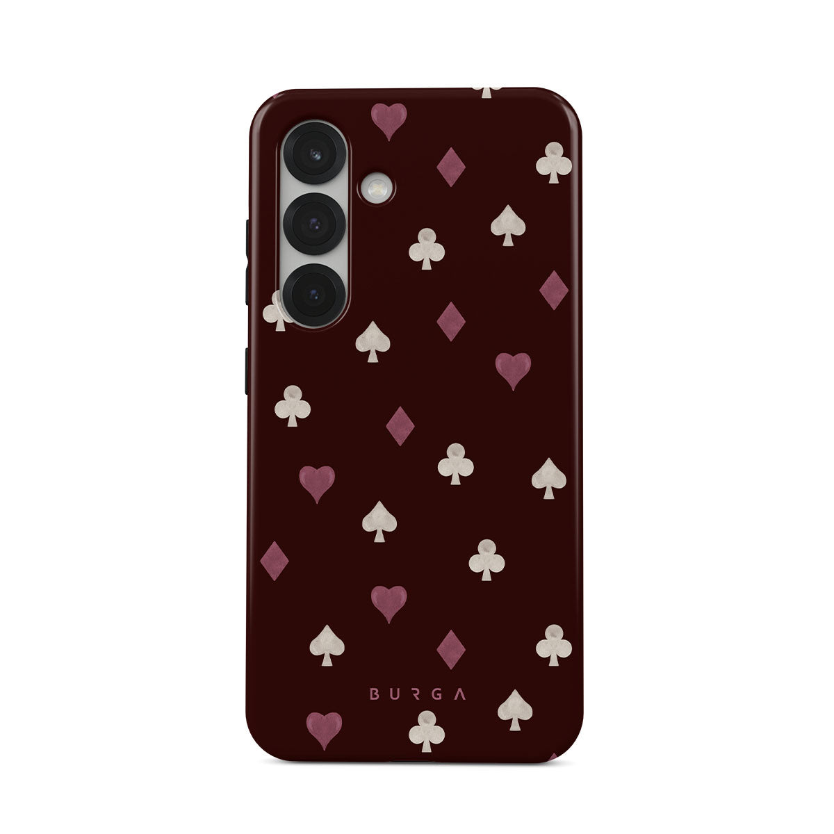 Kenmerken van dit design: kaartspel symbolen, harten, schoppen, ruiten, klaveren, bordeauxrode achtergrond