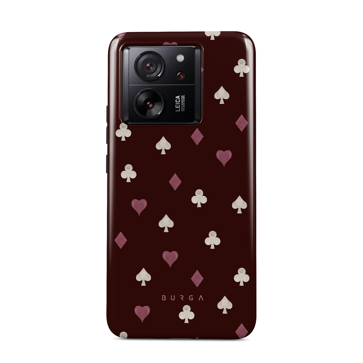 Kenmerken van dit design: kaartspel symbolen, harten, schoppen, ruiten, klaveren, bordeauxrode achtergrond