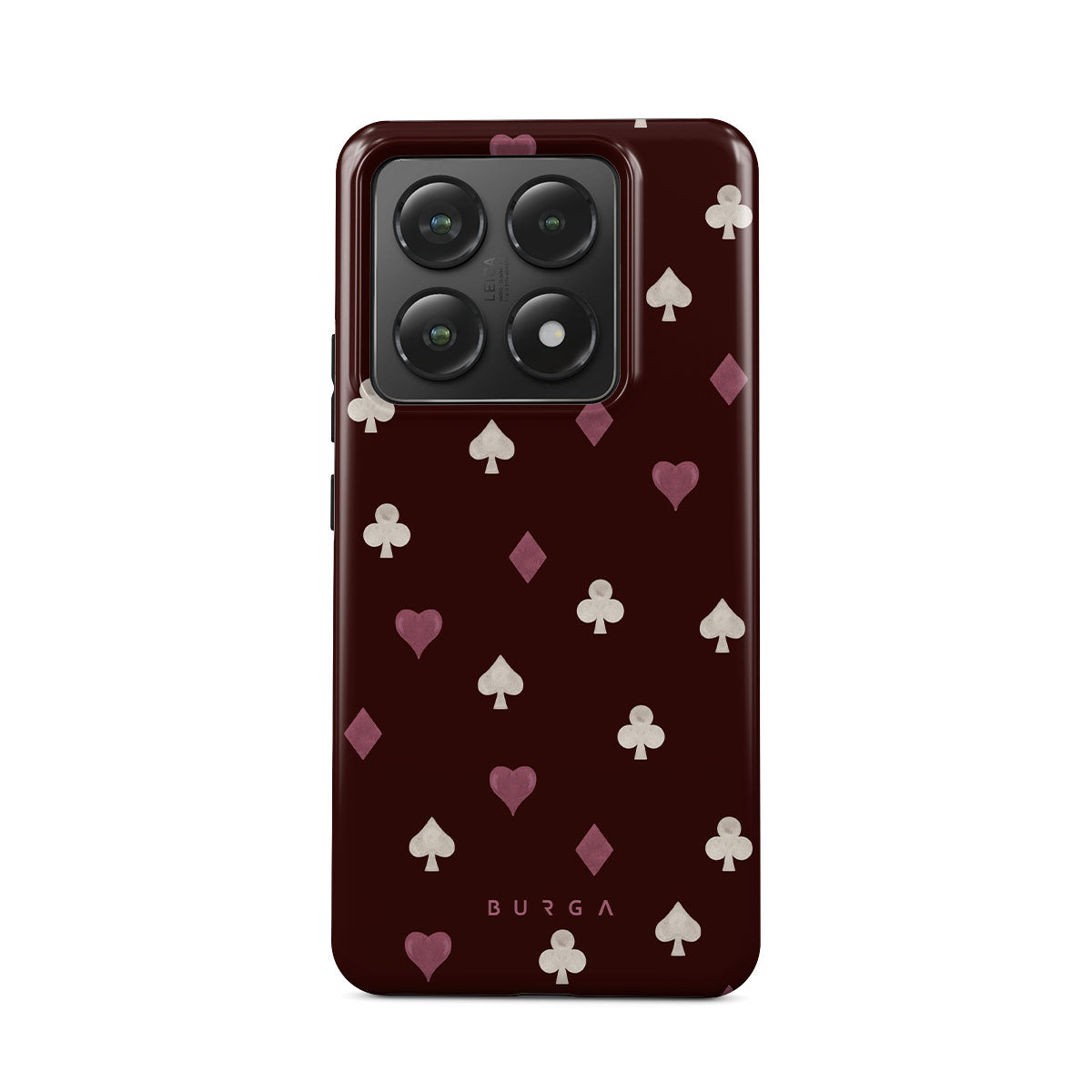 Kenmerken van dit design: kaartspel symbolen, harten, schoppen, ruiten, klaveren, bordeauxrode achtergrond
