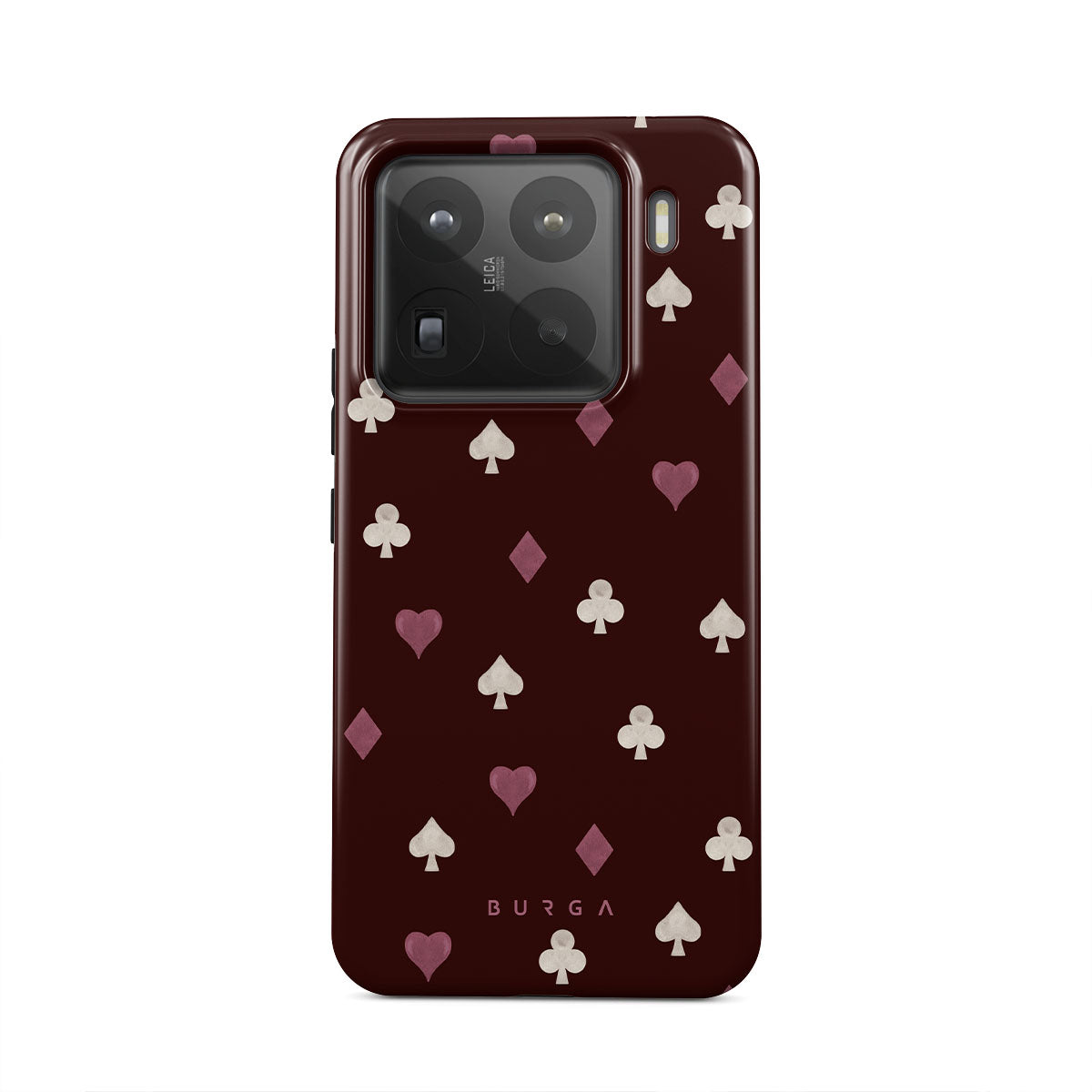 Kenmerken van dit design: kaartspel symbolen, harten, schoppen, ruiten, klaveren, bordeauxrode achtergrond