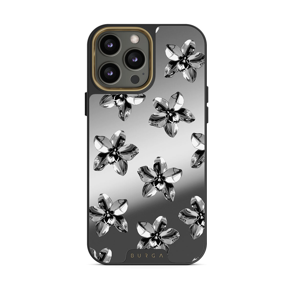 Kenmerken van dit design: zilveren bloemen, metalen details, spiegel