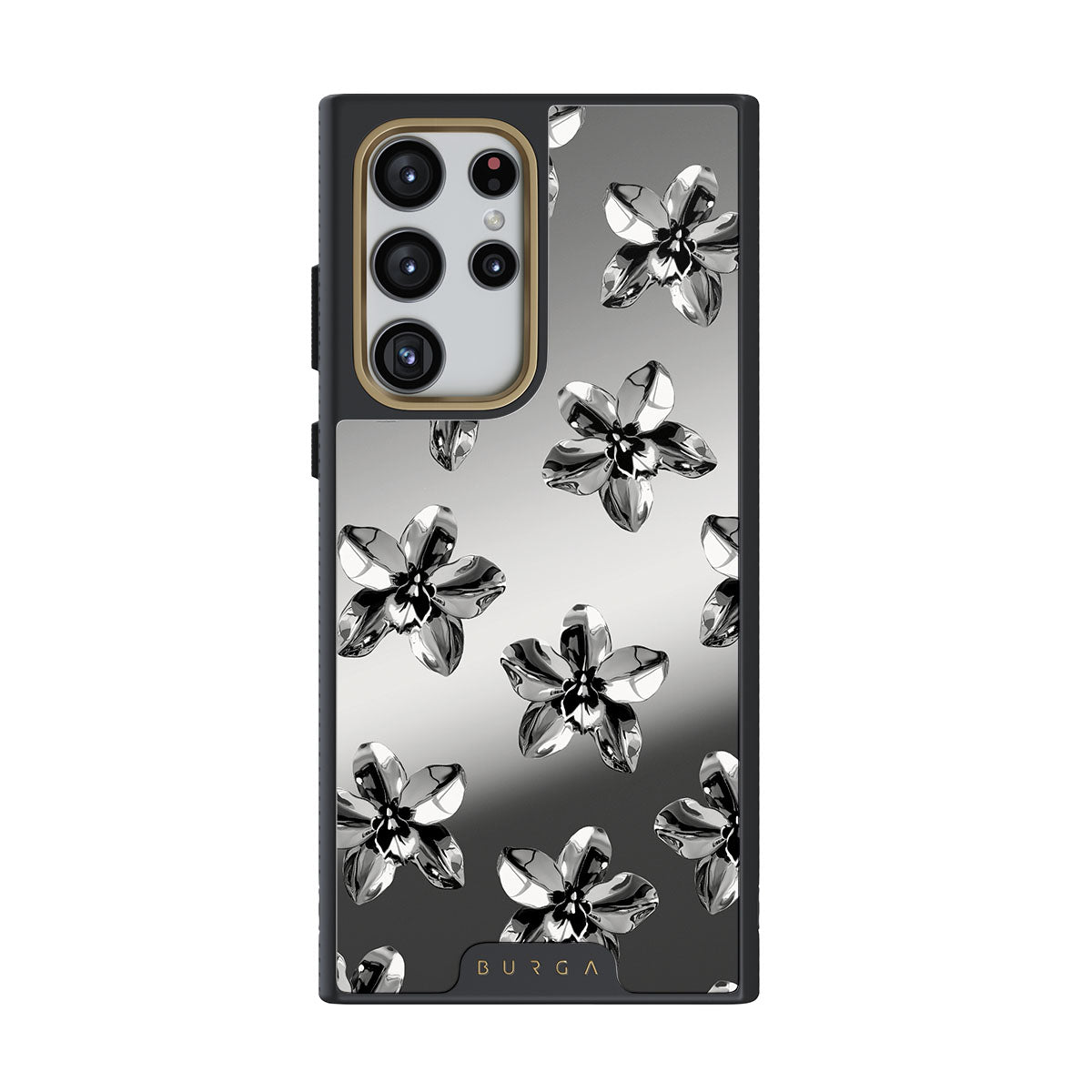 Kenmerken van dit design: zilveren bloemen, metalen details, spiegel