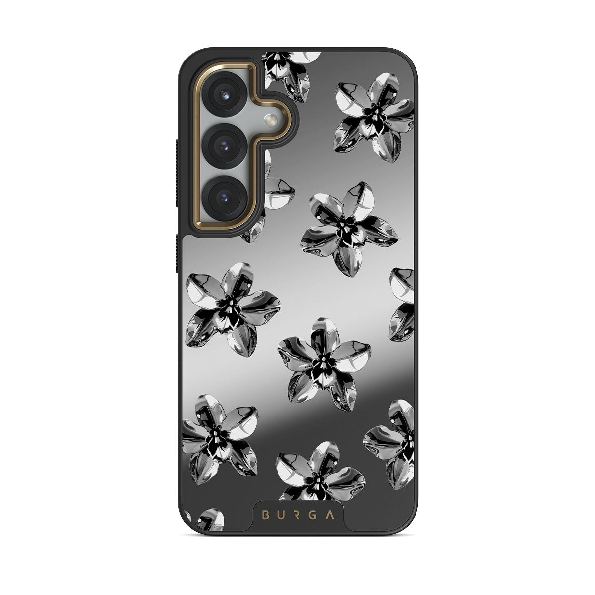 Kenmerken van dit design: zilveren bloemen, metalen details, spiegel
