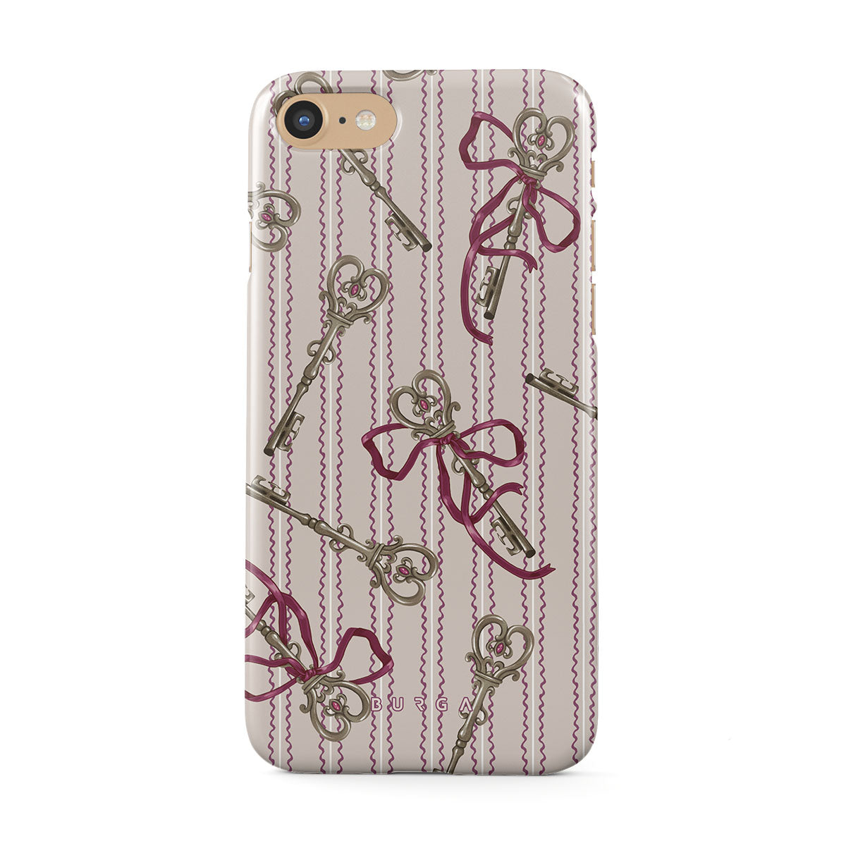Kenmerken van dit design: antieke sleutels, strikken, roze linten, gestreepte achtergrond