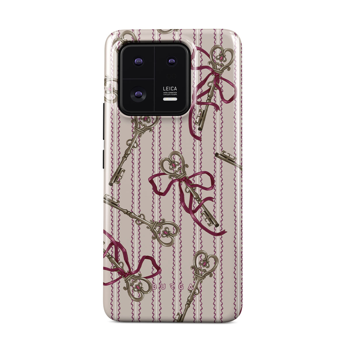 Kenmerken van dit design: antieke sleutels, strikken, roze linten, gestreepte achtergrond