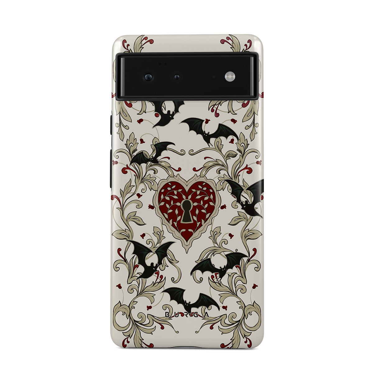 Kenmerken van dit design: hart, slot, vleermuizen, gotische motieven