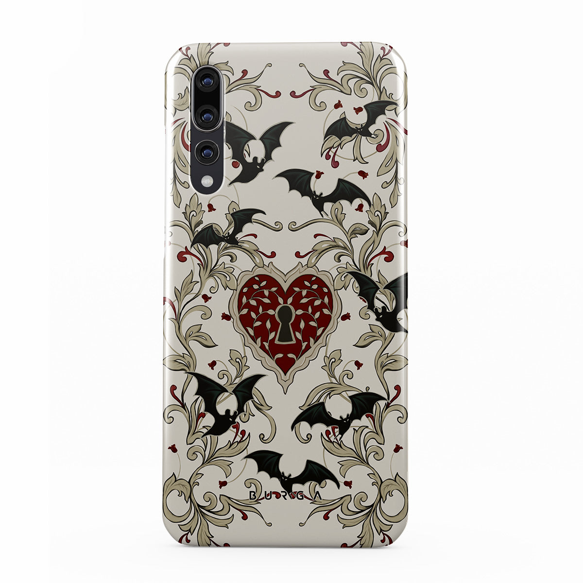Kenmerken van dit design: hart, slot, vleermuizen, gotische motieven