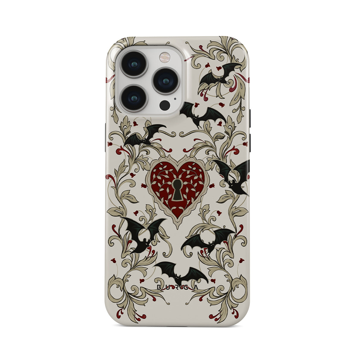 Kenmerken van dit design: hart, slot, vleermuizen, gotische motieven