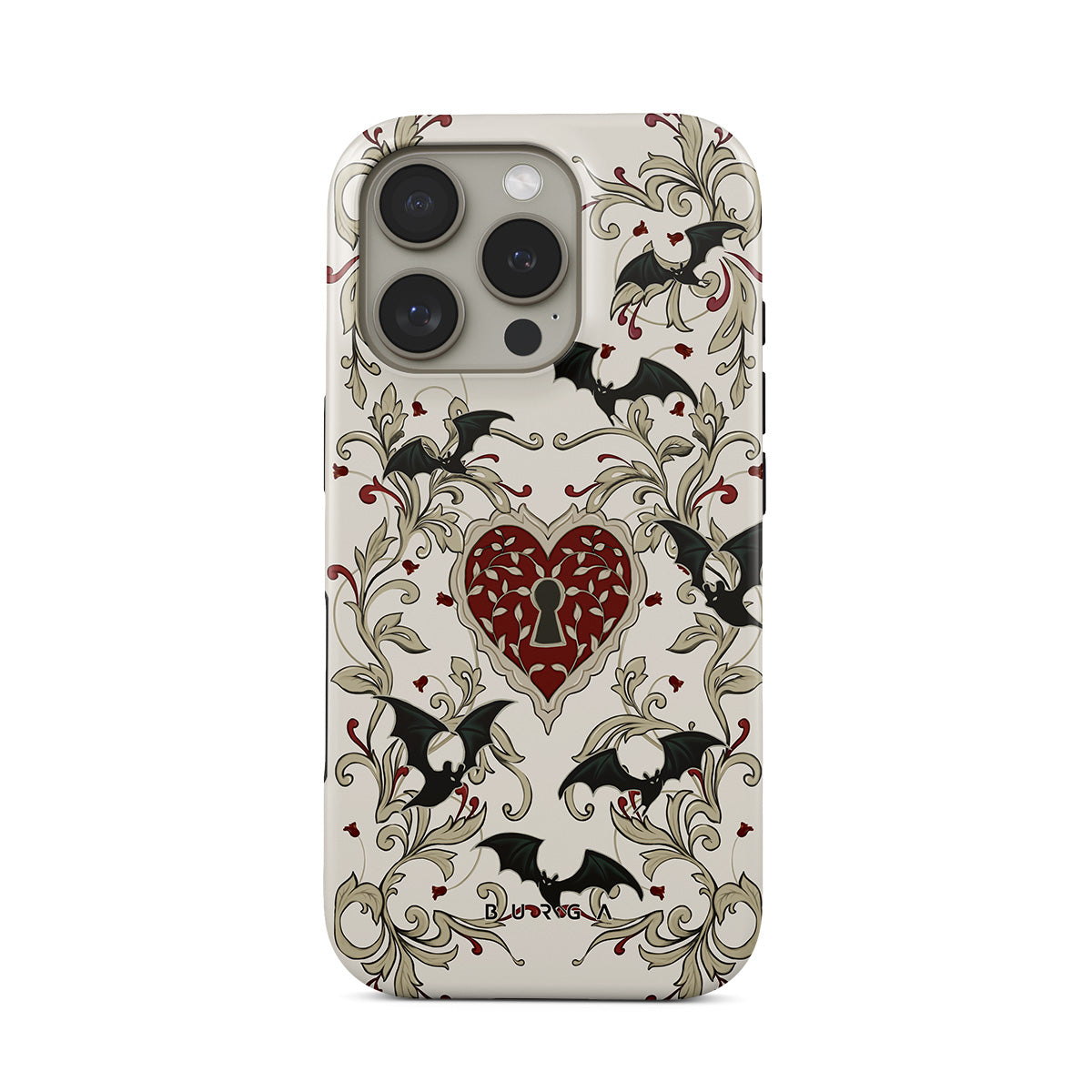 Kenmerken van dit design: hart, slot, vleermuizen, gotische motieven