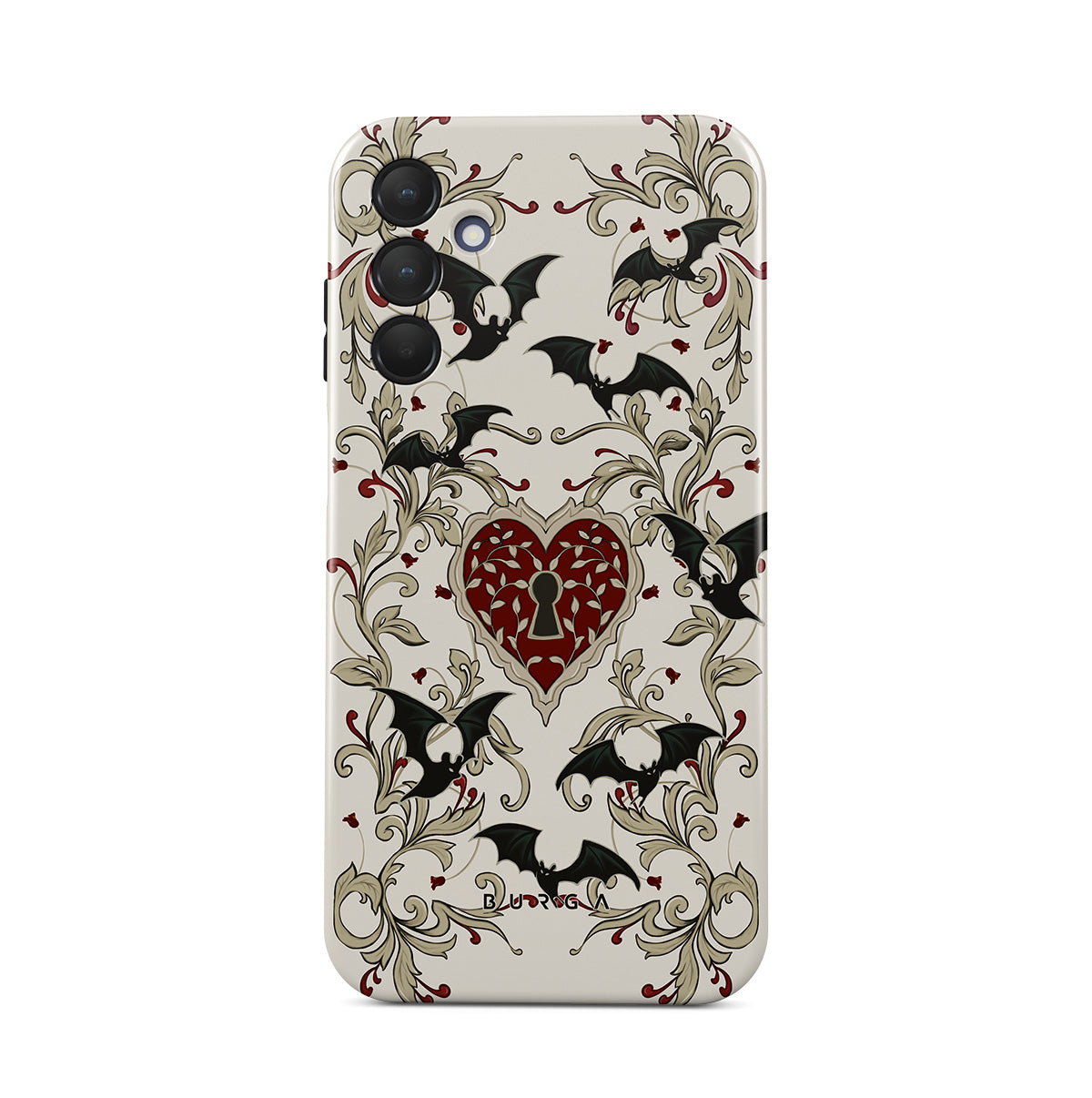 Kenmerken van dit design: hart, slot, vleermuizen, gotische motieven
