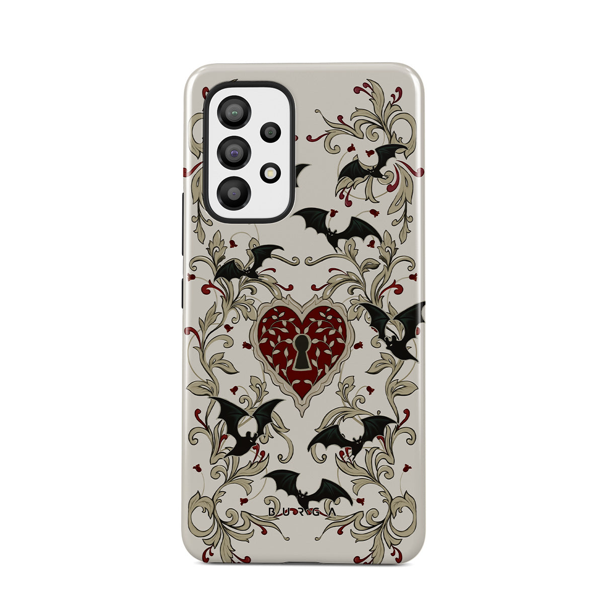 Kenmerken van dit design: hart, slot, vleermuizen, gotische motieven
