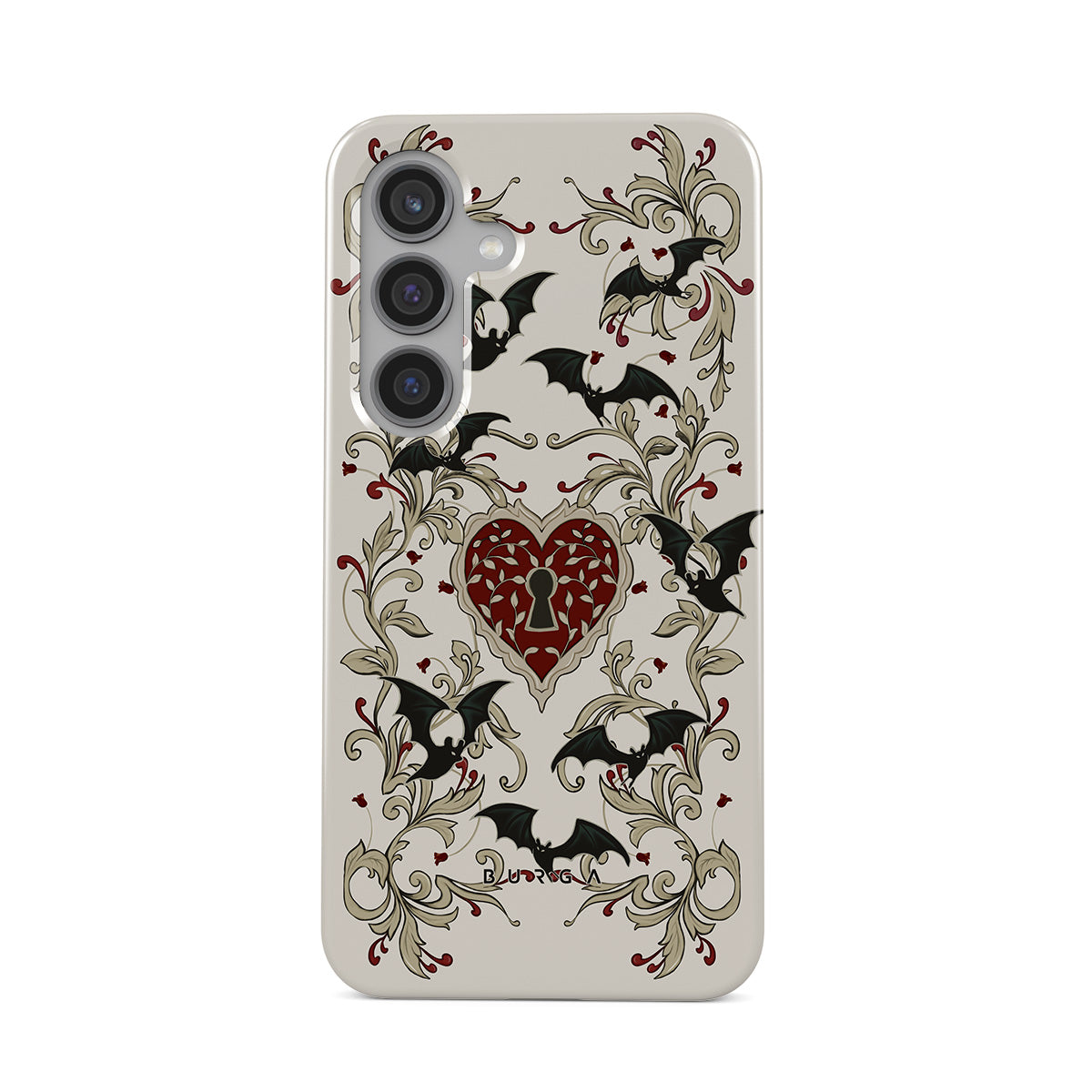 Kenmerken van dit design: hart, slot, vleermuizen, gotische motieven