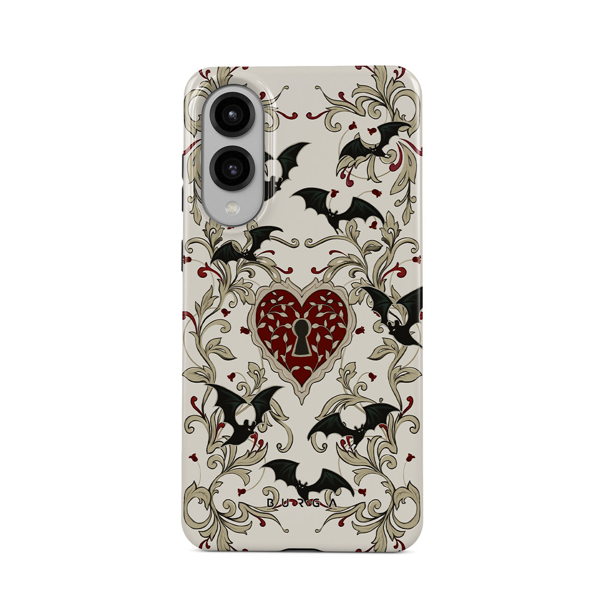 Kenmerken van dit design: hart, slot, vleermuizen, gotische motieven