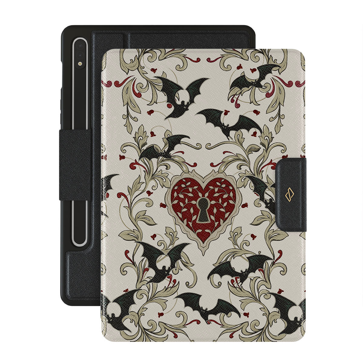 Kenmerken van dit design: hart, slot, vleermuizen, gotische motieven