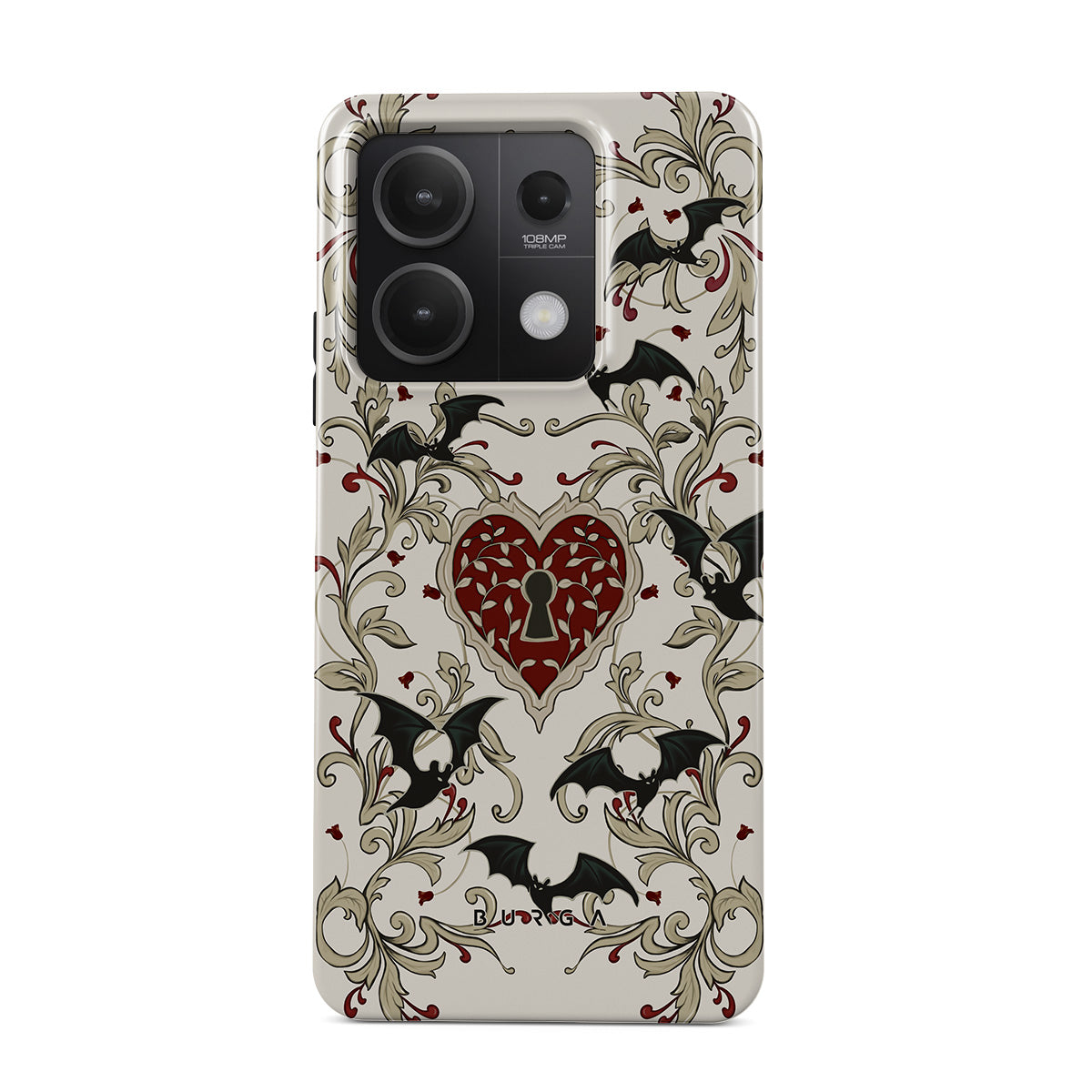 Kenmerken van dit design: hart, slot, vleermuizen, gotische motieven