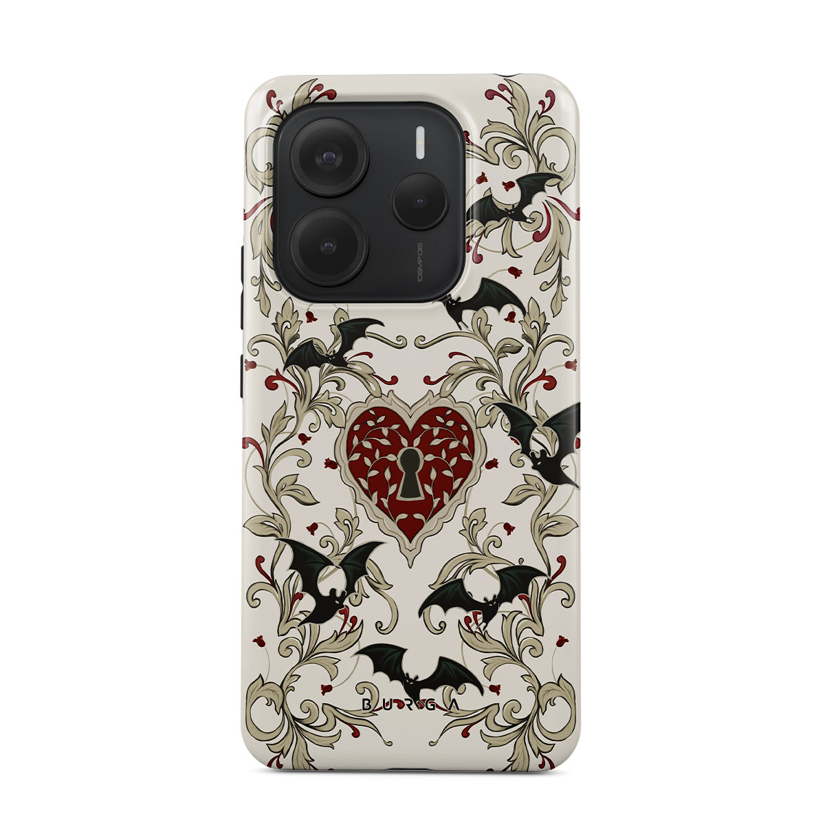 Kenmerken van dit design: hart, slot, vleermuizen, gotische motieven