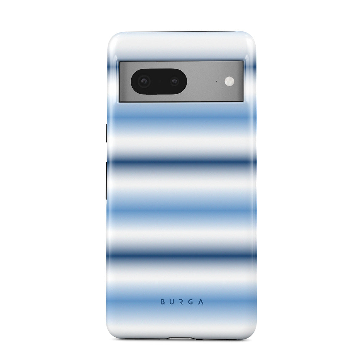 Kenmerken van dit design: zacht blauw kleurverloop, horizontale witte en blauwe strepen