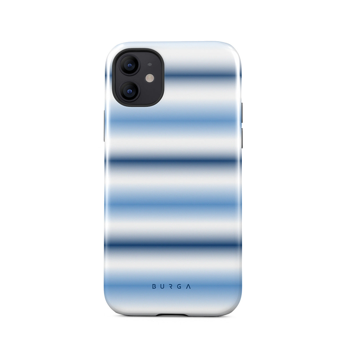 Kenmerken van dit design: zacht blauw kleurverloop, horizontale witte en blauwe strepen