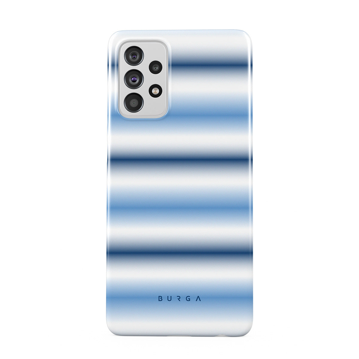 Kenmerken van dit design: zacht blauw kleurverloop, horizontale witte en blauwe strepen