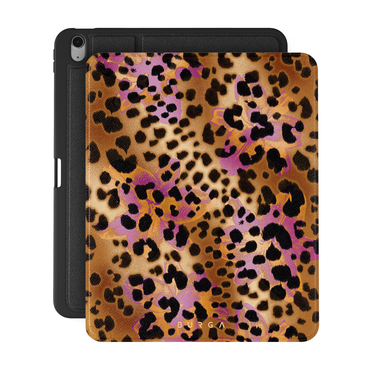 Kenmerken van dit design: luipaardprint, bruin, oranje, paars, dierenprint.