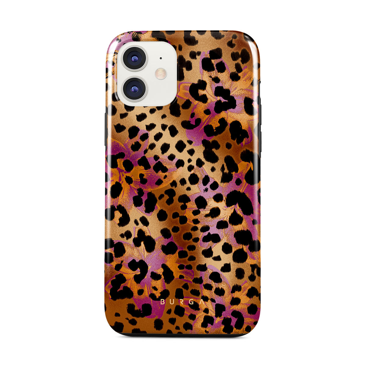 Kenmerken van dit design: luipaardprint, bruin, oranje, paars, dierenprint.