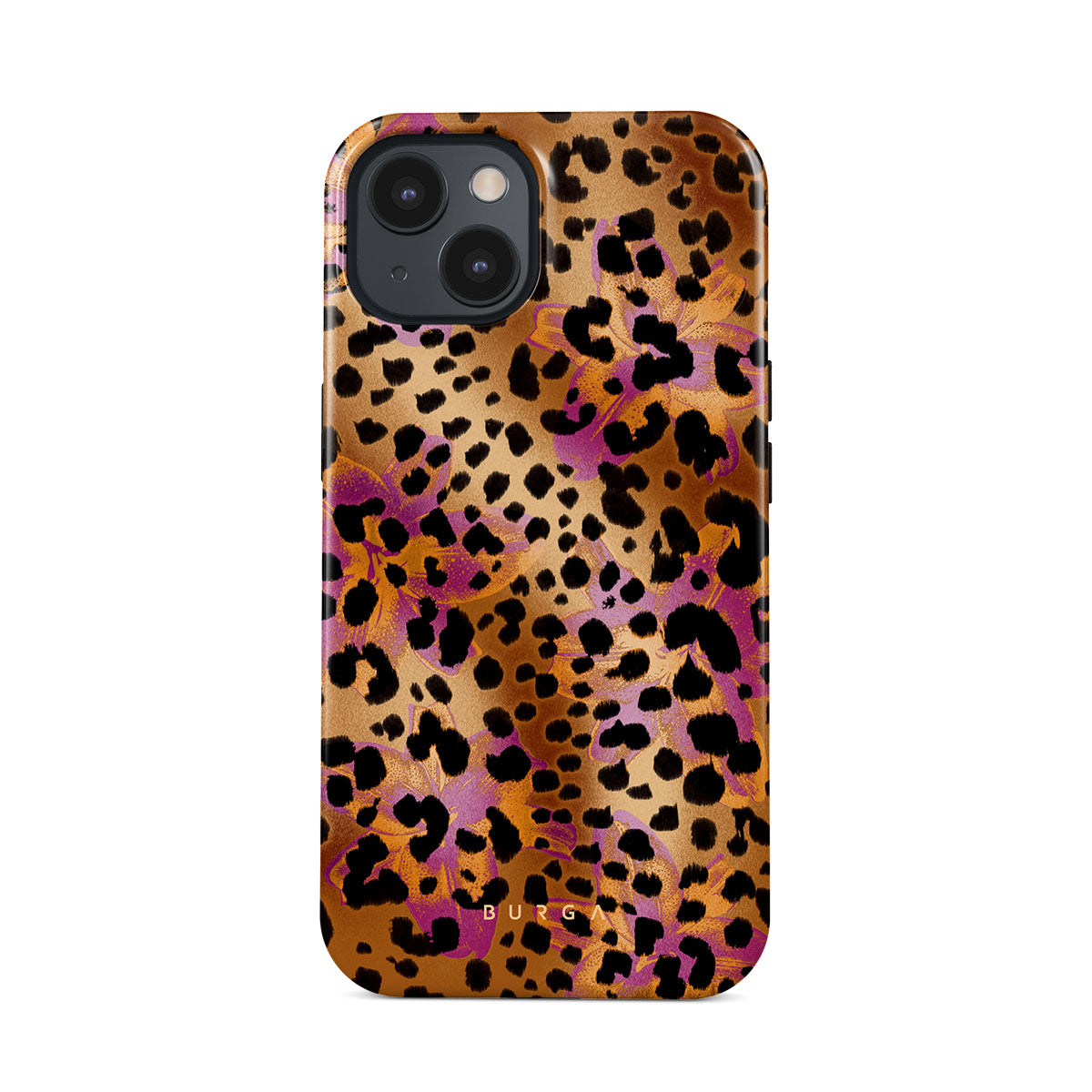 Kenmerken van dit design: luipaardprint, bruin, oranje, paars, dierenprint.