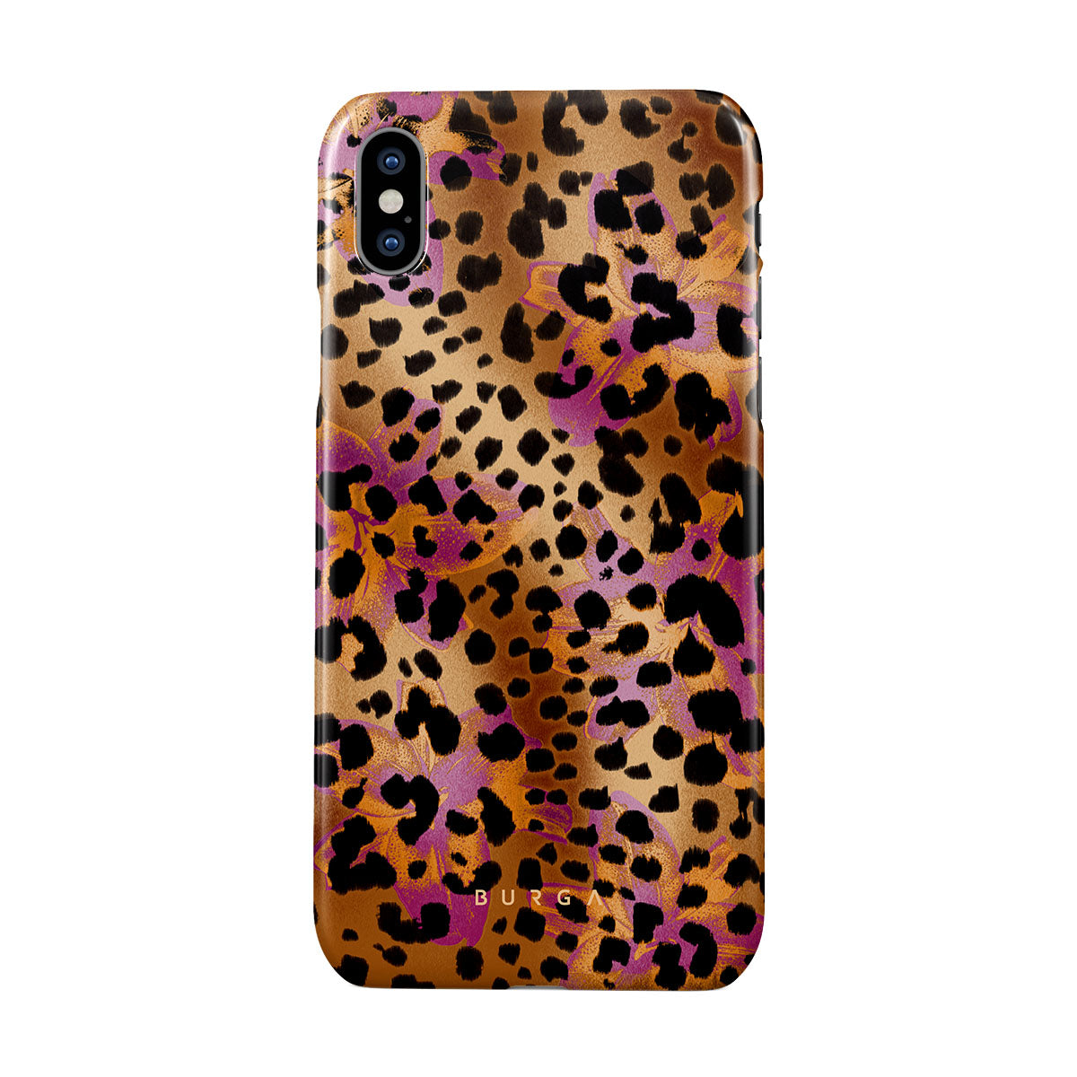 Kenmerken van dit design: luipaardprint, bruin, oranje, paars, dierenprint.