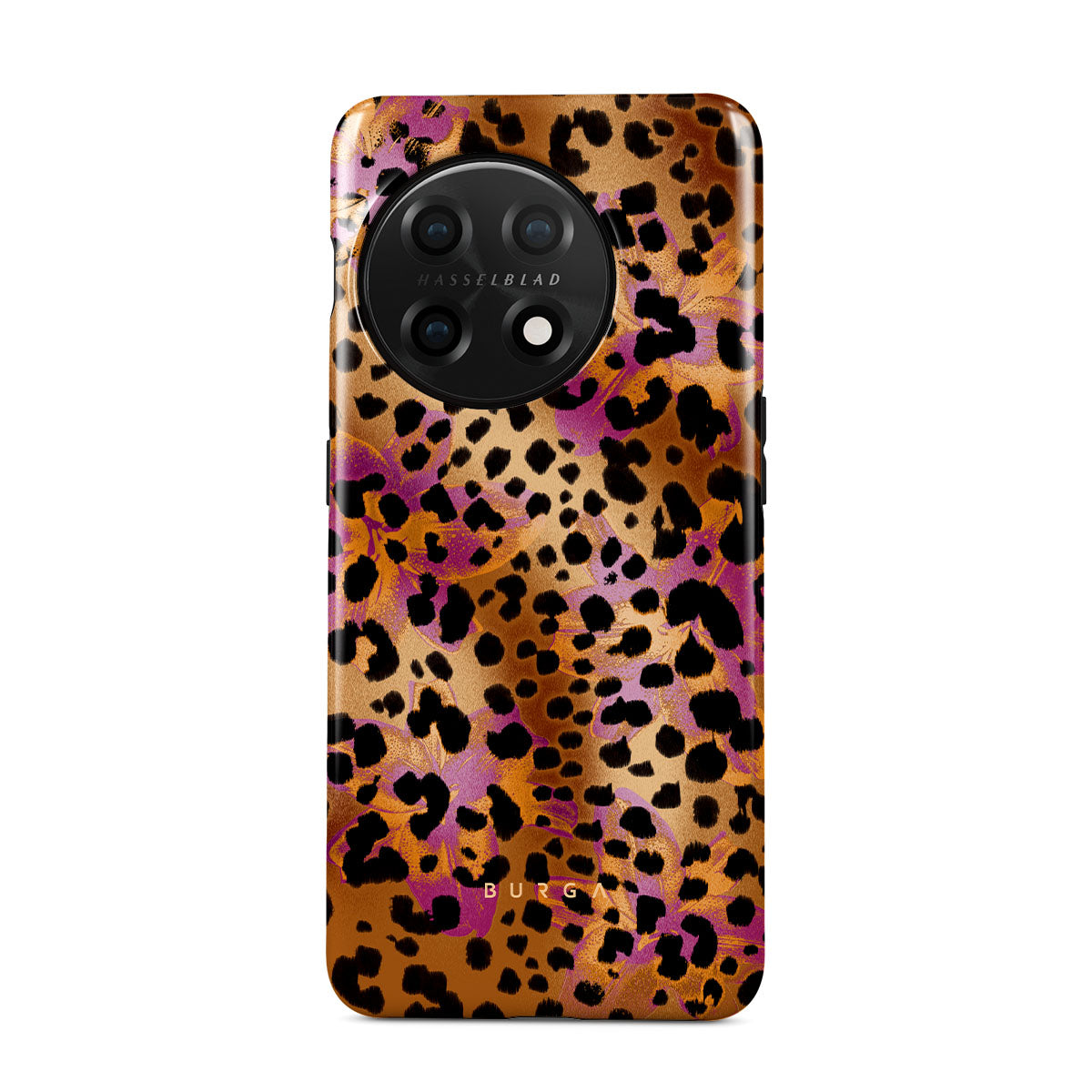 Kenmerken van dit design: luipaardprint, bruin, oranje, paars, dierenprint.