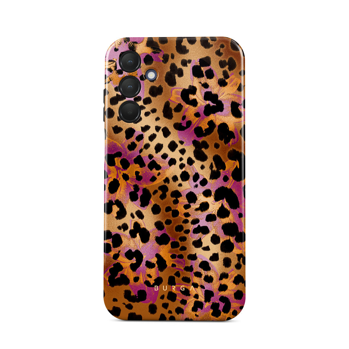Kenmerken van dit design: luipaardprint, bruin, oranje, paars, dierenprint.