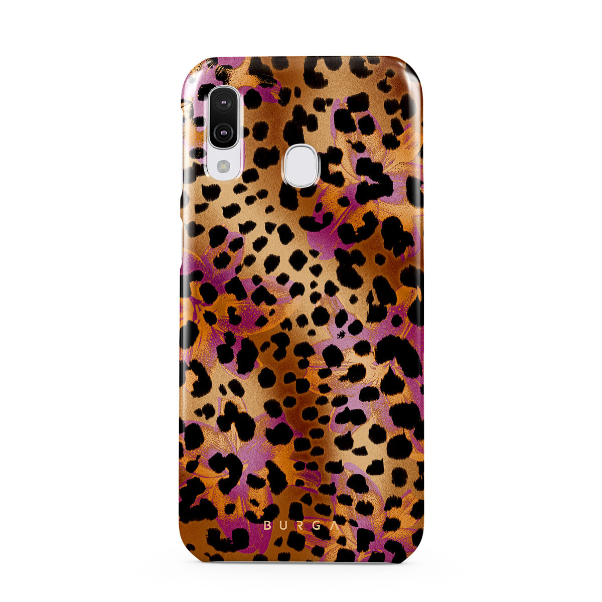 Kenmerken van dit design: luipaardprint, bruin, oranje, paars, dierenprint.