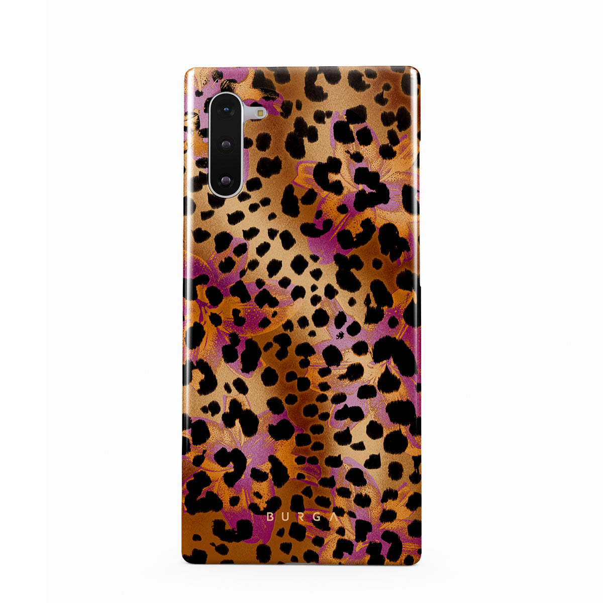 Kenmerken van dit design: luipaardprint, bruin, oranje, paars, dierenprint.