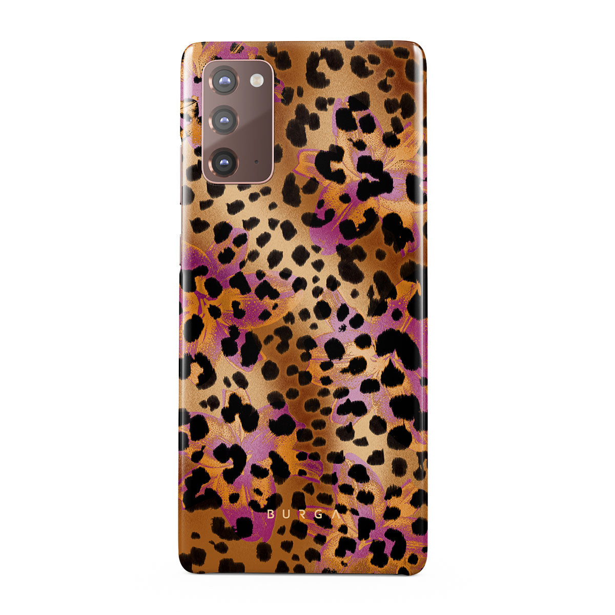 Kenmerken van dit design: luipaardprint, bruin, oranje, paars, dierenprint.