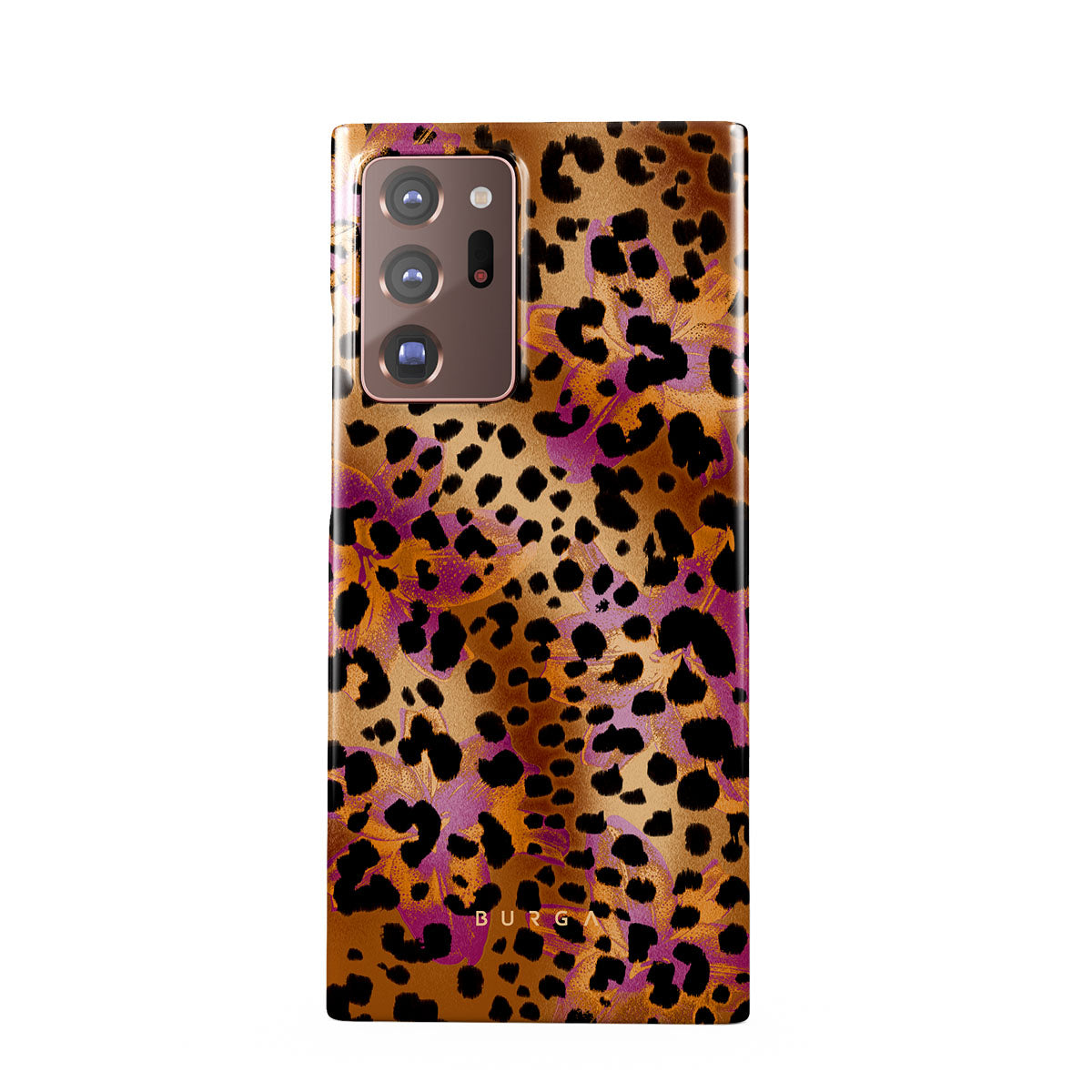 Kenmerken van dit design: luipaardprint, bruin, oranje, paars, dierenprint.