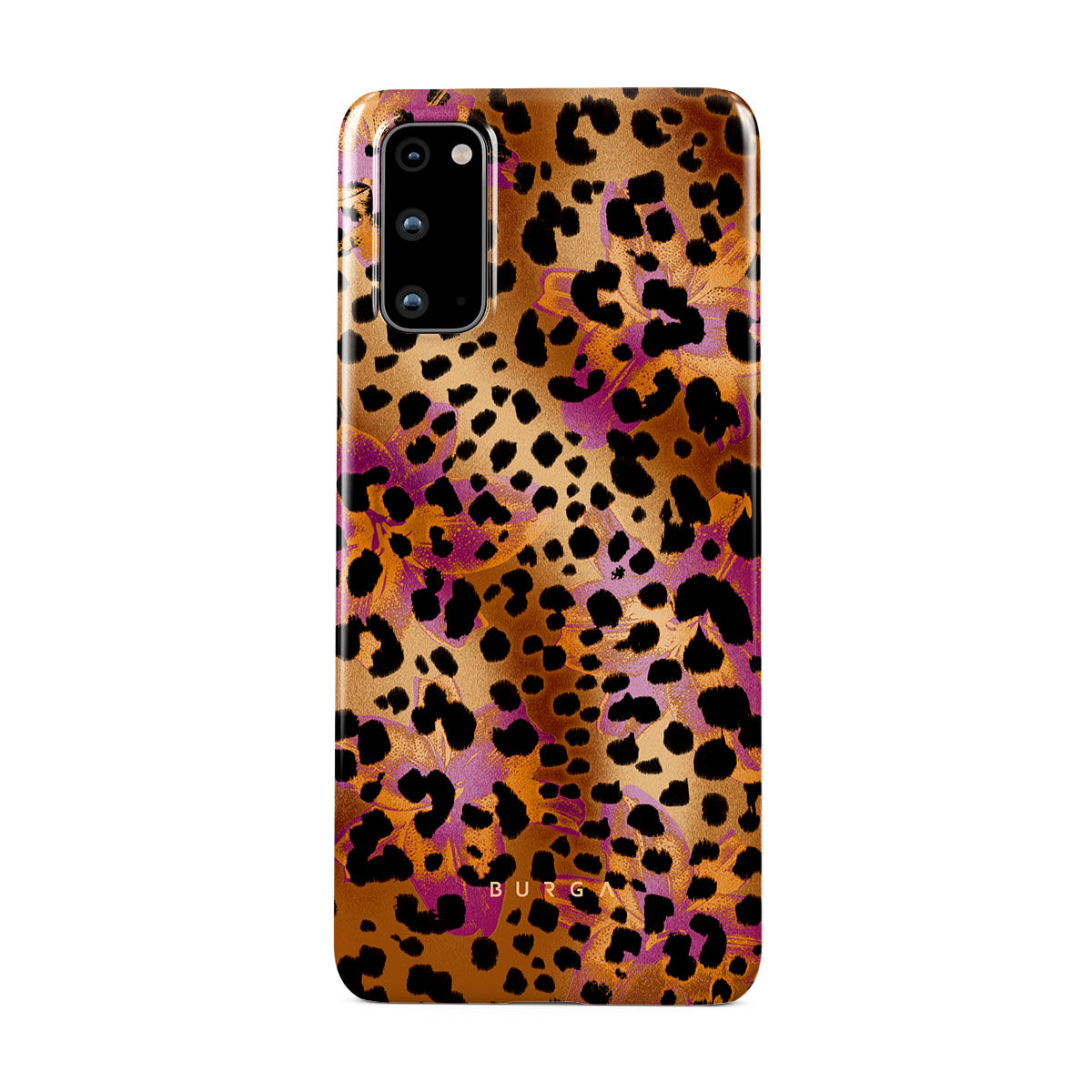 Kenmerken van dit design: luipaardprint, bruin, oranje, paars, dierenprint.