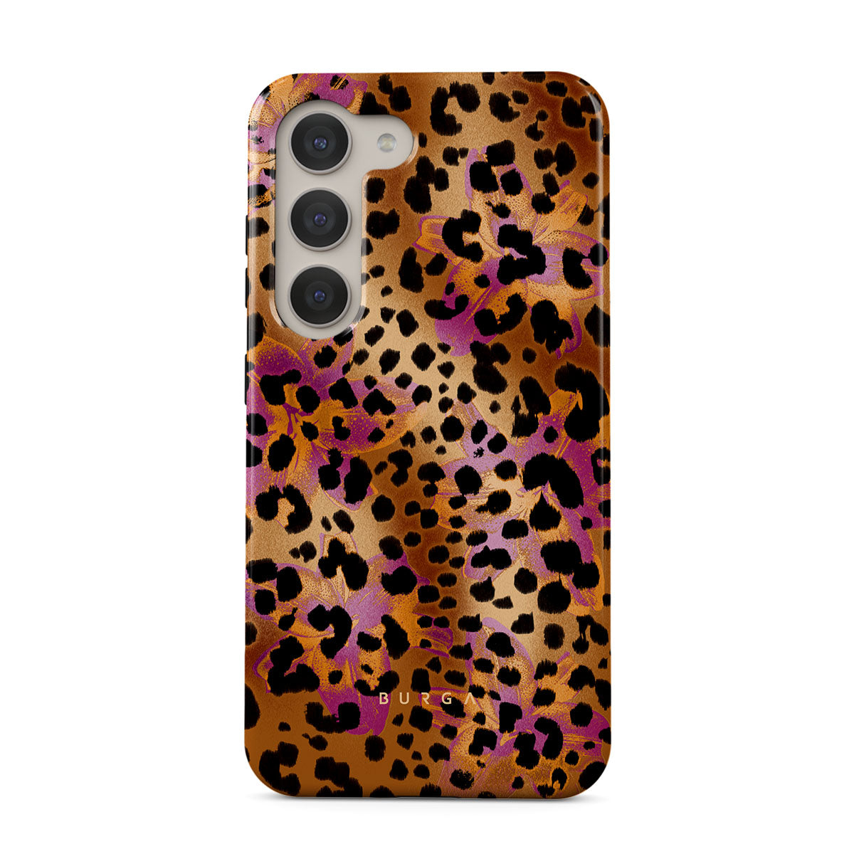 Kenmerken van dit design: luipaardprint, bruin, oranje, paars, dierenprint.