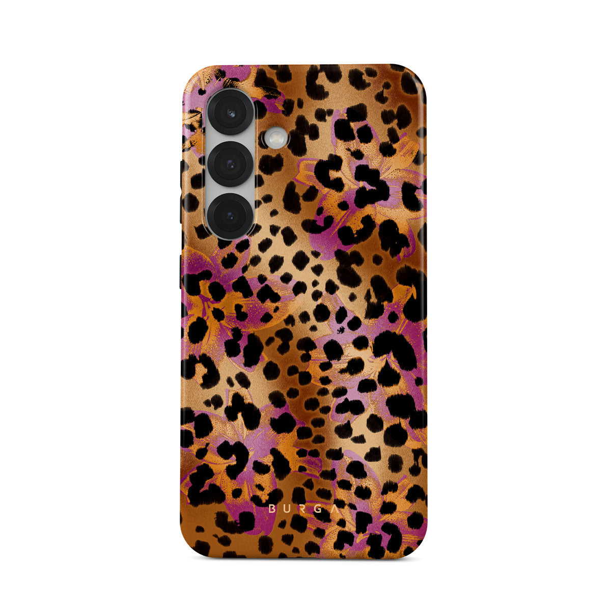 Kenmerken van dit design: luipaardprint, bruin, oranje, paars, dierenprint.