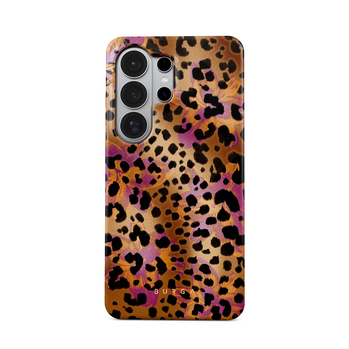 Kenmerken van dit design: luipaardprint, bruin, oranje, paars, dierenprint.