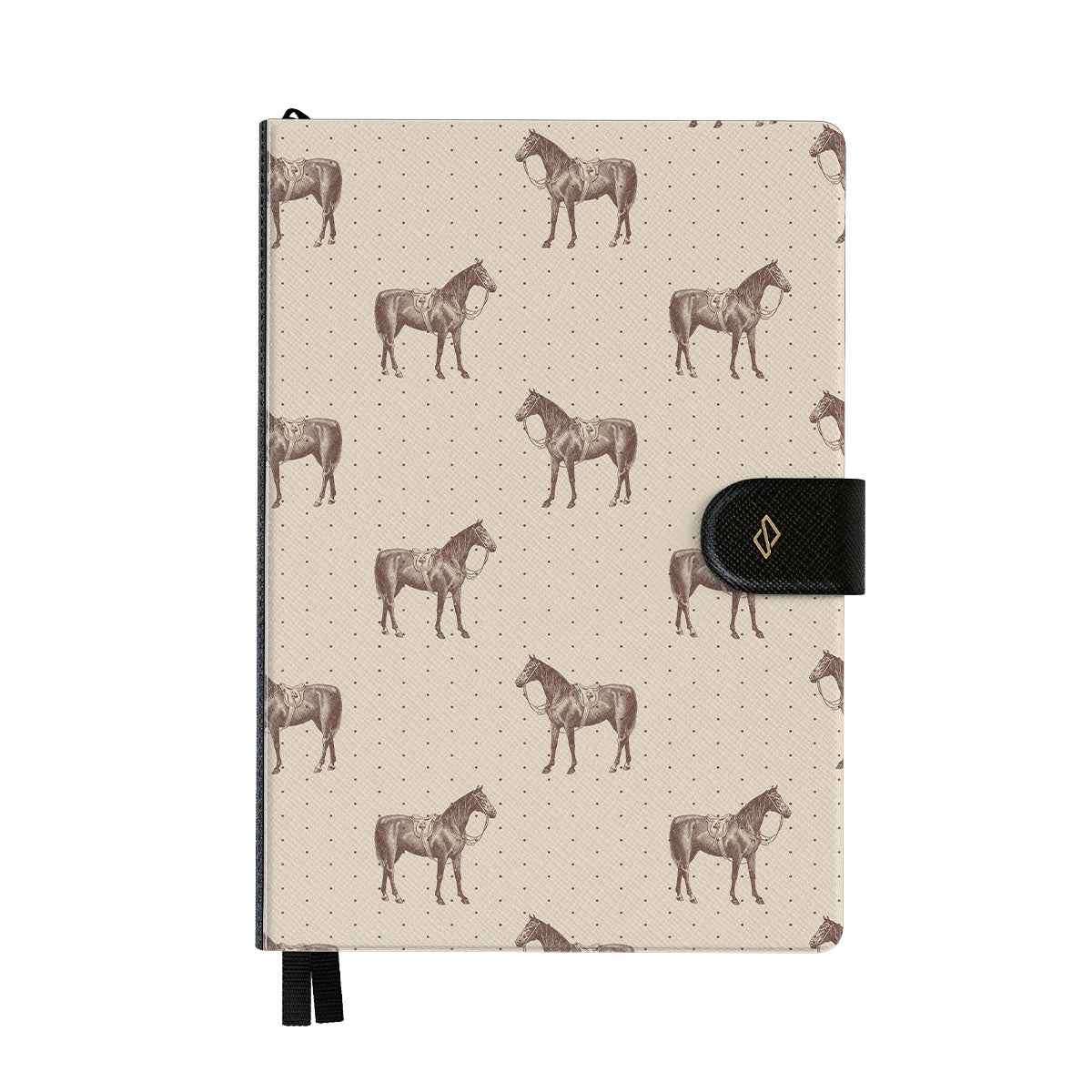 Uitgevoerd in strak veganistisch saffiano leer en vastgezet met een stijlvolle magnetische sluiting, is het stevig genoeg om koffievlekken en kleine ongelukjes te weerstaan.