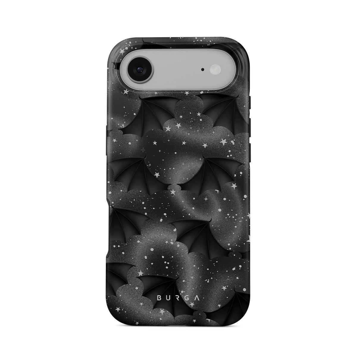 Kenmerken van dit design: vleermuisvleugels, sterren, mystieke wervelingen, zwarte lucht
