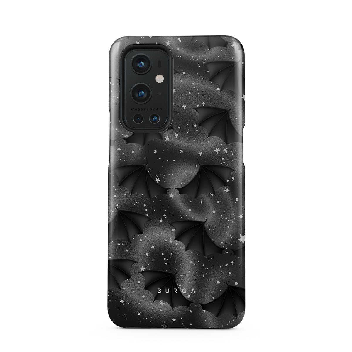 Kenmerken van dit design: vleermuisvleugels, sterren, mystieke wervelingen, zwarte lucht