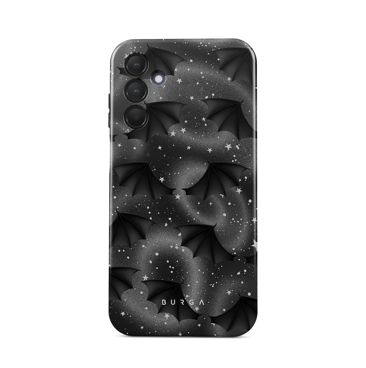 Kenmerken van dit design: vleermuisvleugels, sterren, mystieke wervelingen, zwarte lucht