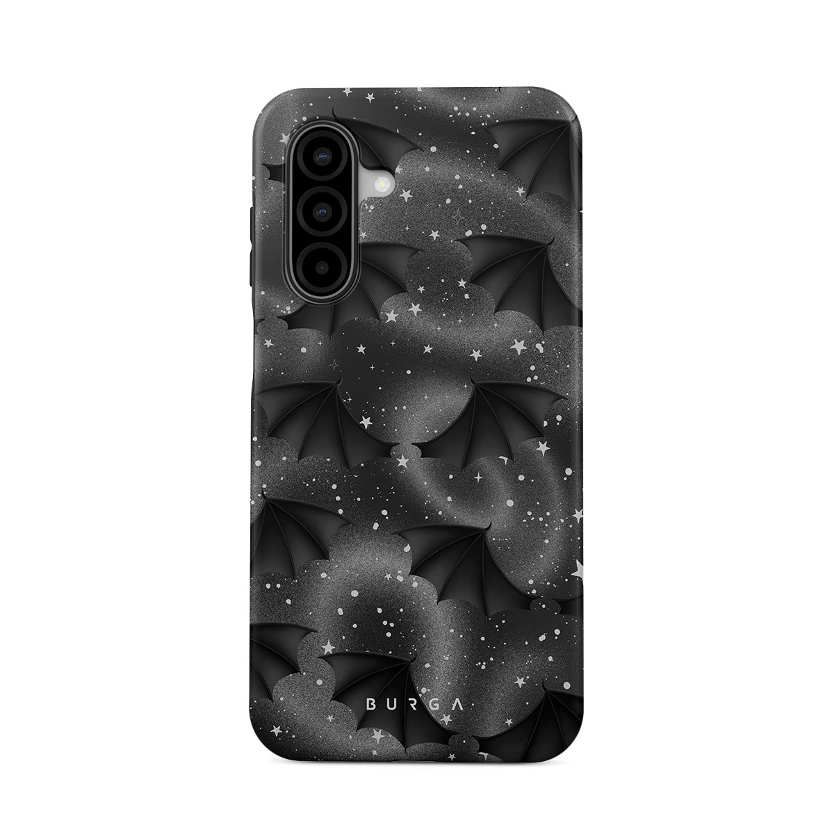 Kenmerken van dit design: vleermuisvleugels, sterren, mystieke wervelingen, zwarte lucht