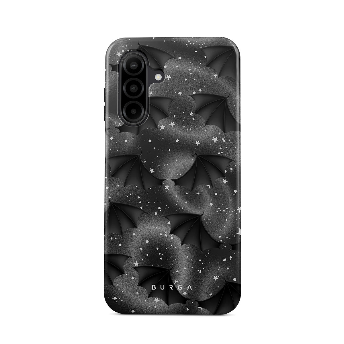 Kenmerken van dit design: vleermuisvleugels, sterren, mystieke wervelingen, zwarte lucht
