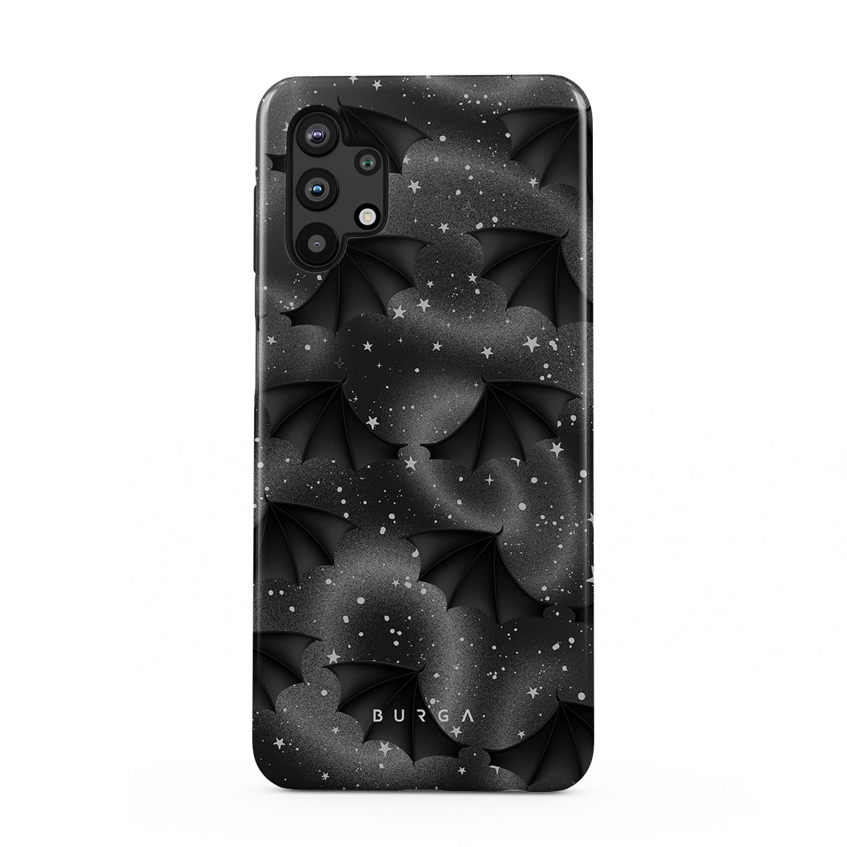 Kenmerken van dit design: vleermuisvleugels, sterren, mystieke wervelingen, zwarte lucht