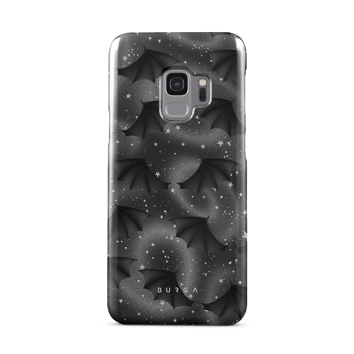 Kenmerken van dit design: vleermuisvleugels, sterren, mystieke wervelingen, zwarte lucht