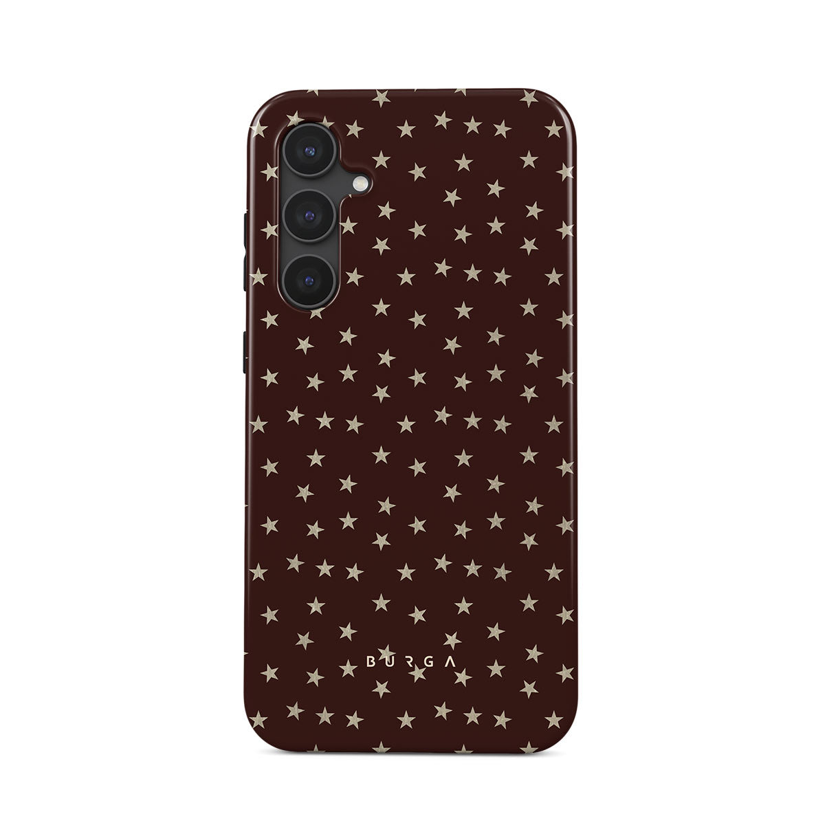 Dit ontwerp heeft: gouden sterren, bruin, kerstnacht
