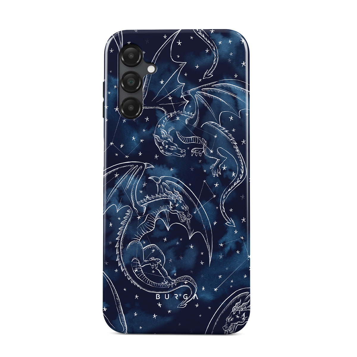 Kenmerken van dit design: draken, sterren, sterrenbeelden, donkerblauwe lucht