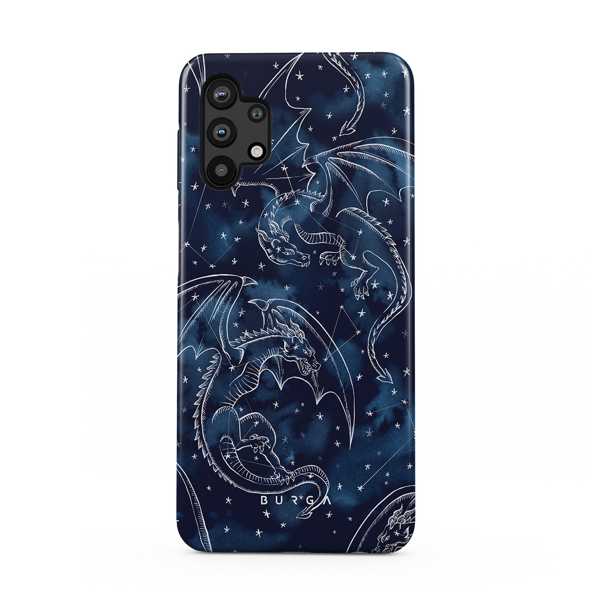 Kenmerken van dit design: draken, sterren, sterrenbeelden, donkerblauwe lucht