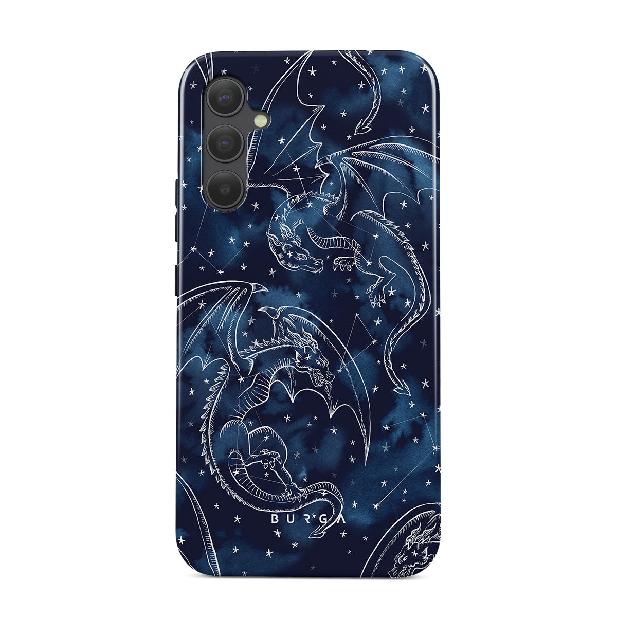 Kenmerken van dit design: draken, sterren, sterrenbeelden, donkerblauwe lucht