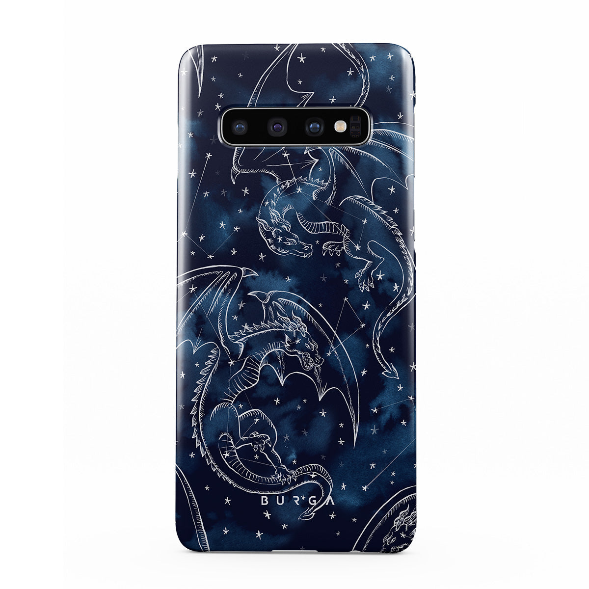 Kenmerken van dit design: draken, sterren, sterrenbeelden, donkerblauwe lucht